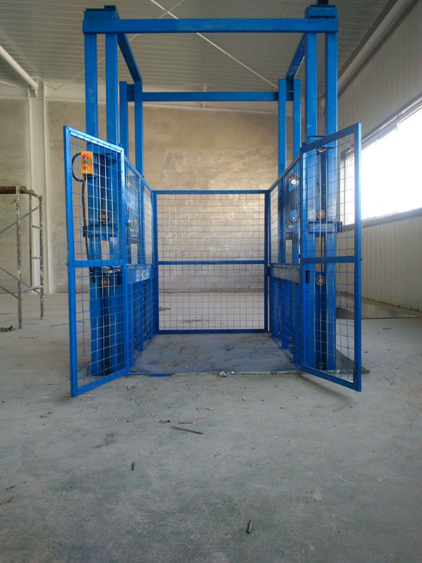 導軌式升降機是貨梯。導軌式升降機也可加裝電動門。在升降機到達指定樓層后電動門可以自行打開,電動門在打開狀態下升降機停止上下升降運行,保證操作者使用時的安全。當然也可以不加裝電動門,因為每層的控制按鈕都配有應急按鈕開關,在向升降機上裝卸貨物時可關閉應急開關,臨時停止液壓升降機的升降運行,以免有其他人員在別的樓層升降載貨臺面,從而保證使用者的安全。